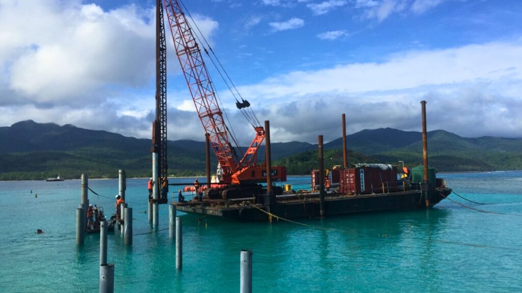 Unique access to 120T crane barges and heavy earthmoving gear. -